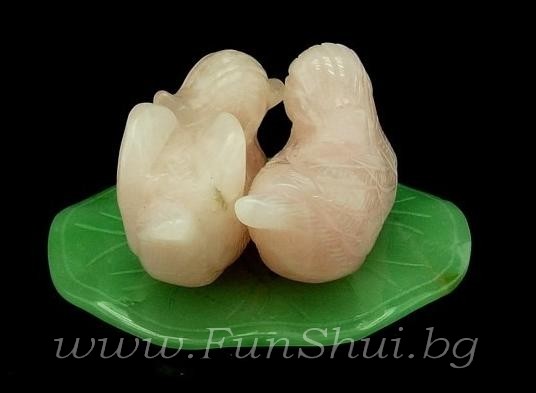 Розовият кварц от който са изработени патиците мандаринки се счита за един от най-мощните символи за любов и хармония във Фън Шуй. Този нежен талисман ще привлече към Вас любовта и романтичните чувства.